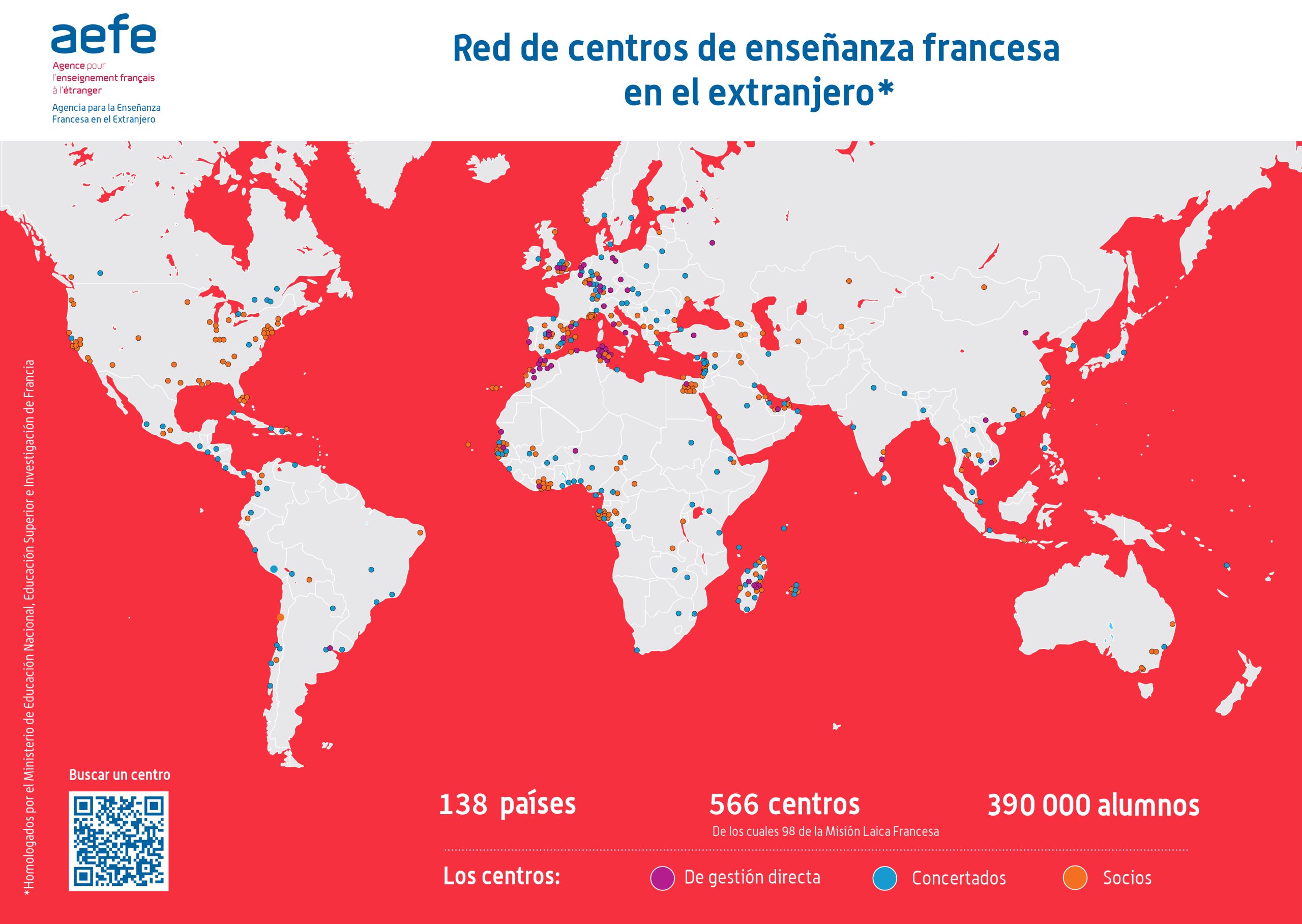 L'AEFE est l'Agence pour l'enseignement français à l'étranger. Ce réseau scolaire unique compte 566 établissements et plus de 390 000 élèves dans 138 pays, dès la maternelle et jusqu'à la dernière année du baccalauréat.